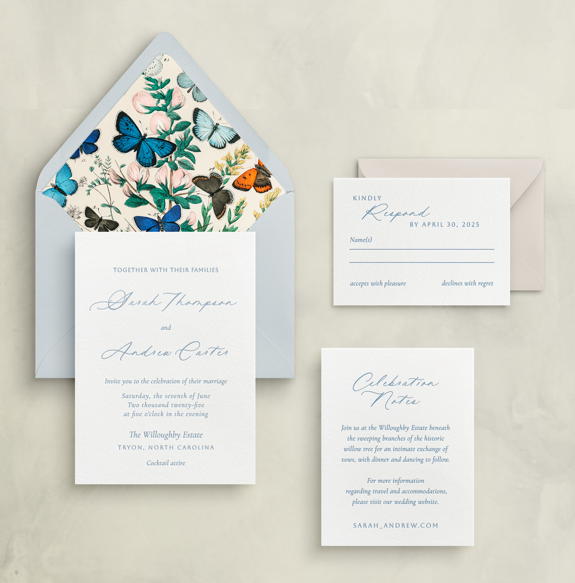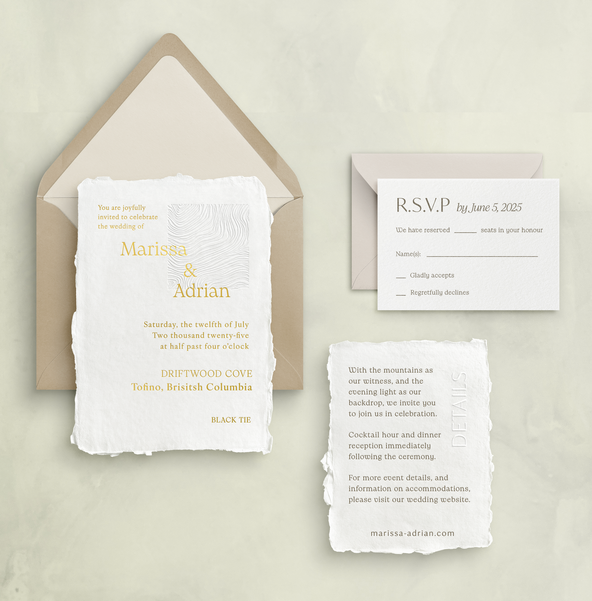 After checkout, you’ll receive a form to share your invitation wording and other details. A proof will be sent within 3–5 business days, with the opportunity for revisions. Once approved, your suite will go to print.